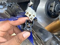 Remove the middle fairing on the left-hand side, and carefully unclip the turn signal cable.