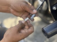 Use your motorcycle's key to open the rear seat, and remove the seat to access the tool pouch.