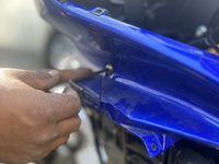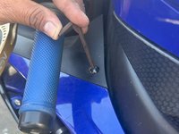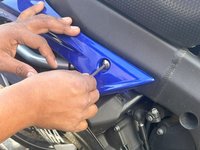 Using the 10mm Allen key, remove the hardware securing the left side fairings.