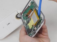 With the plastic tool, pry off the monitor battery from the motherboard.