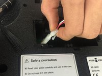 Slide the battery out, and disconnect it from the robot by squeezing the tab on the power cable.