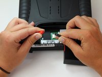 Carefully pry up the small metal feet surrounding the red switch connector on both sides using a metal spudger.