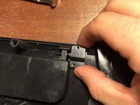 Hold down the button located above the battery while applying downward pressure to the battery.