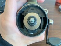 Underneath the spool there will be a thin washer and a drag adjuster spring.