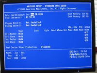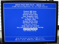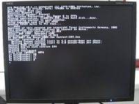 Enter the BIOS by pressing the Delete or F1 key and choose to Save settings, as shown in the second photo. This will save default CMOS settings and the mainboard will reboot itself. It should then boot into the printer firmware, with an ASCII GUI similar to the third photo. The small display at the front of the printer should also function now.