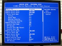 To prevent the printer firmware from freezing when you connect the Ethernet cable, you must adjust some settings in the BIOS. Specifically, you need to disable certain onboard devices to avoid IRQ conflicts. Since the firmware runs on FreeDOS, which is not a Plug and Play OS, these adjustments are necessary.