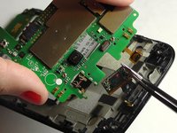 Caution! Ribbons should NOT be torn when disassembling the motherboard from the phone! Use tweezers to GENTLY wiggle the ribbons back and forth to loosen and separate ribbons from the motherboard and phone.