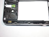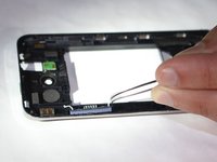 Using a pair of tweezers, remove the volume button by unlatching the two white bands holding it in place.