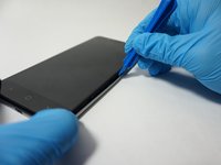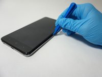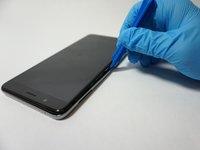 Insert the plastic opening tool into the space you created between the phone back and frame.
