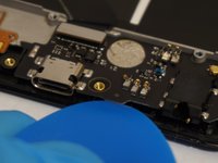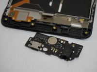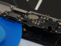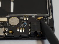 Use a spudger to pry up the the antenna connector on the top right of the charging port card.