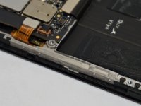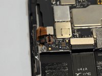 Using a set of tweezers, pull off the small piece of tape on top of the ribbon cable connector on the left side of the motherboard.