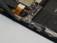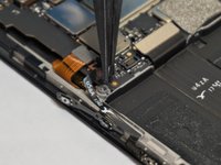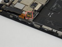Using a plastic opening tool, separate the fingerprint ribbon connector from the motherboard.