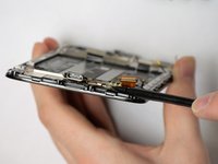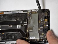 After disconnection of all the metal tabs, insert the spudger underneath the bottom of the phone's circuit board.