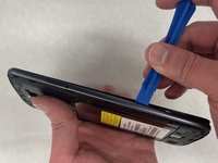 Starting at one corner, wedge a plastic opening pick or tool underneath the plastic backing to start undoing the tabs that connect the backing to the phone.