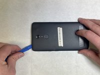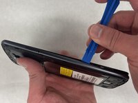 Starting at one corner, wedge a plastic opening pick or tool underneath the plastic backing to start undoing the tabs that connect the backing to the phone.