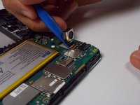 • With the spudger, gently pry off camera at the top-left of the phone to get the front camera.