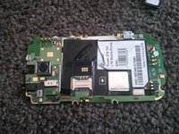 • Pry apart the frame with the battery holder and camera housing from the mainboard of the phone.