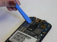 Use the iFixit Opening Tool to disconnect the camera connector by prying up the press fit connector from the motherboard.
