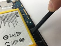 Wedge a spudger underneath the battery and gently pry upwards to remove the battery.