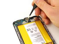 Using the tweezers, peel back the yellow Kapton tape located on the right side of the phone.