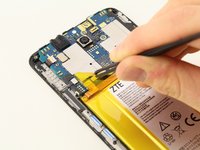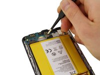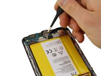 Use tweezers to remove the antenna. The antenna comes up on the right side of the phone, by the battery, and is attached to the motherboard.