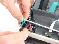 Locate the green wire on the front, left side of the printer and remove it.