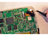 • Insert the tip of your opening tool into the small gap between the gray and white plastic covering. Pry it open and you should hear the clips opening up.