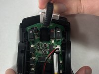 • Take out the battery obstructing movement. This should now allow you to gently pull the circuit board up from the bottom of the mouse.