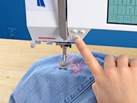 Engage the backstitch function on your sewing machine, and sew a straight line back over the hole, going about five stitches beyond the damage.