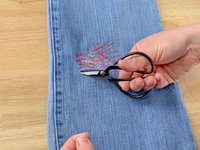 Examine the damage. Clip any long, loose threads, and remove any debris from the hole.