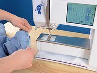 Slide the pant leg back onto the arm of the sewing machine, making sure that the leg goes around the arm.