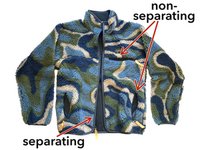 Non-separating zippers are connected at the bottom and are fastened by pulling the slider.