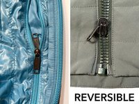 Reversible zippers can be used inside-out and have a slider with a pull on both sides or a pull that can move from one side to the other.