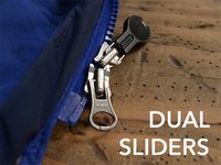 Dual zippers (also referred to as two-way zippers) have two sliders: