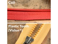 Coil zippers have teeth that are part of a continuous nylon coil that sits at the edge of the zipper tape.