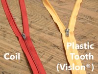 Plastic tooth (Vislon®) zippers have individual teeth made of plastic that are clamped onto the edge of the zipper tape.