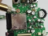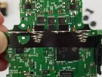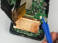 Gently remove three ribbon connectors from the base of the device. One is connected to the mic connector, the other two are on the top of the device next to the "LINE OUT" plug-in (directly behind the device display screen).