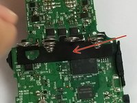 Unscrew three (PH #1), 7mm screws from the button board near the display and gently flip over.