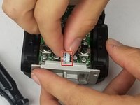 With the flat end of the black plastic spudger, pry the terminal away from the case.