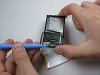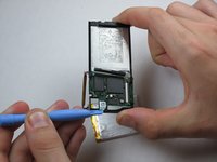 Remove the battery by prying the battery off from the bottom with a Zune opening tool.