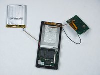 • Remove the battery by prying the battery off from the bottom with a Zune opening tool.