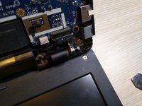 on the right hinge there is a metal hook attached on the hinge. this is attached to the bottom case .. just move the screen to release it.