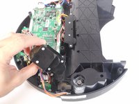 Slide the main brush motor up and out of its housing. (located in front of the wheel on the left side)