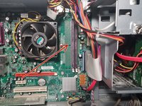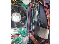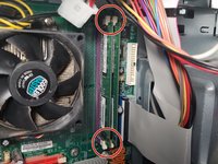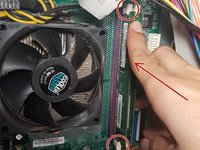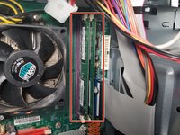 With the case panel open, locate the two RAM disk slots on the right side of the motherboard.