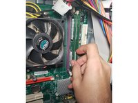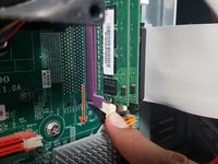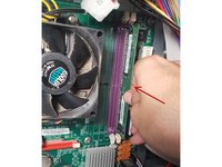 Use your index finger to release the tab at the bottom of the left RAM disk slot.