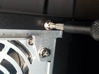 Screw the two 1cm combination screws back into place on the right side of the case panel.