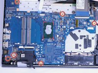 Use a PH1 screwdriver to unscrew six 3 mm Phillips head screws on the motherboard.