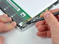 Peel back one strip of foil tape in the upper left corner and another near where the trackpad connects to the logic board.