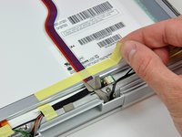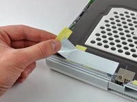 Remove the small pieces of yellow tape securing the thin metal LCD cover to the display.