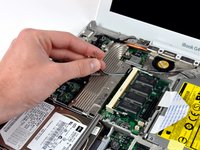 Use a spudger to pry the heat sink up on the left side, near the hard drive.